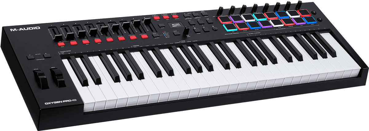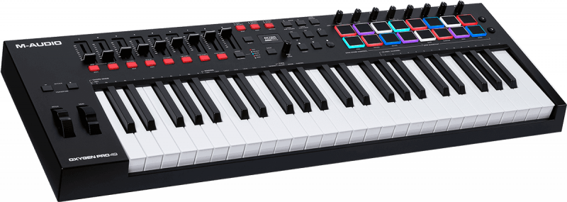 Vous avez envie de rejoindre le camp des professionnels avec un clavier de qualité, proposant de nombreuses fonctionnalités et un minimum de tracas de programmation de nombreux logiciels ? Alors la gamme des claviers-maîtres Oxygen Pro de M-Audio est faite pour vous. L'Oxygen Pro 49, version à 49 touches grand format, met à votre disposition une quantité impressionnante de fonctionnalités et une suite logicielle très complète pour booster votre créativité, ainsi qu'un workflow très intuitif vous permettant de vous concentrer sur la seule chose qui importe : votre créativité.