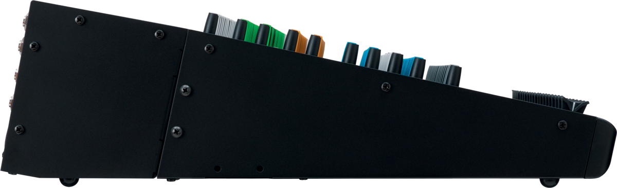 - Specs complémentaires : - Contrôle de volume, panoramique, mute, solo et 6 départs Aux (3/4 ou 5/6) par tranche