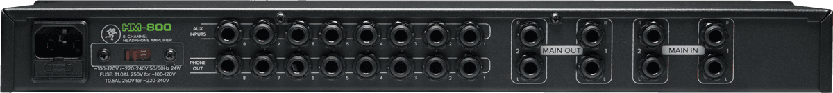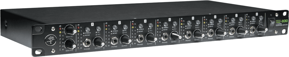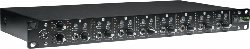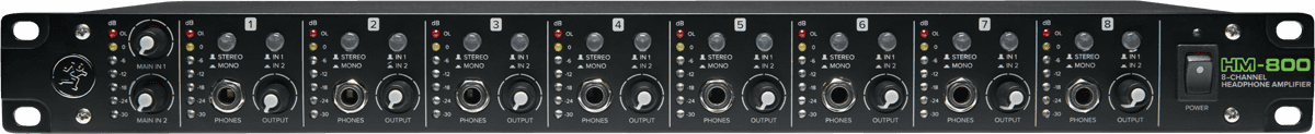 - Alimentation : Adaptateur secteur - Alimentation incluse : Oui - Catégorie : préampli casque - Dimensions (mm) : 224 x 46 x 483 - Entrées : 2 x 2 x jack, 8 x jack aux in - Nbre canaux : 8 - Poids (kg) : 3,60 kg - Rackable : Oui - Sortie directe : Non - Switch mono : Oui - Talkback : Non - Volume par canal : Oui - Specs complémentaires : - 2 x entrée stéréo 2 x jack 6,35 - 2 x sorties stéréo 2 x jack 6,35 - Vumètre à Led 7 segments par canal et sur le master - 8 canaux Chaque canal comprend - 2 sorties casques - 1 entrée auxiliaire - Mode mono/stéréo et sélection d'entrée 1/2 - Contrôle de volume - 16 sorties casque au total