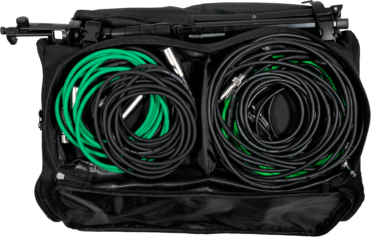 La housse est fournie sans pied de micro ni câble (les photos avec les câbles et les pieds sont réalisées à titre d'exemple) .