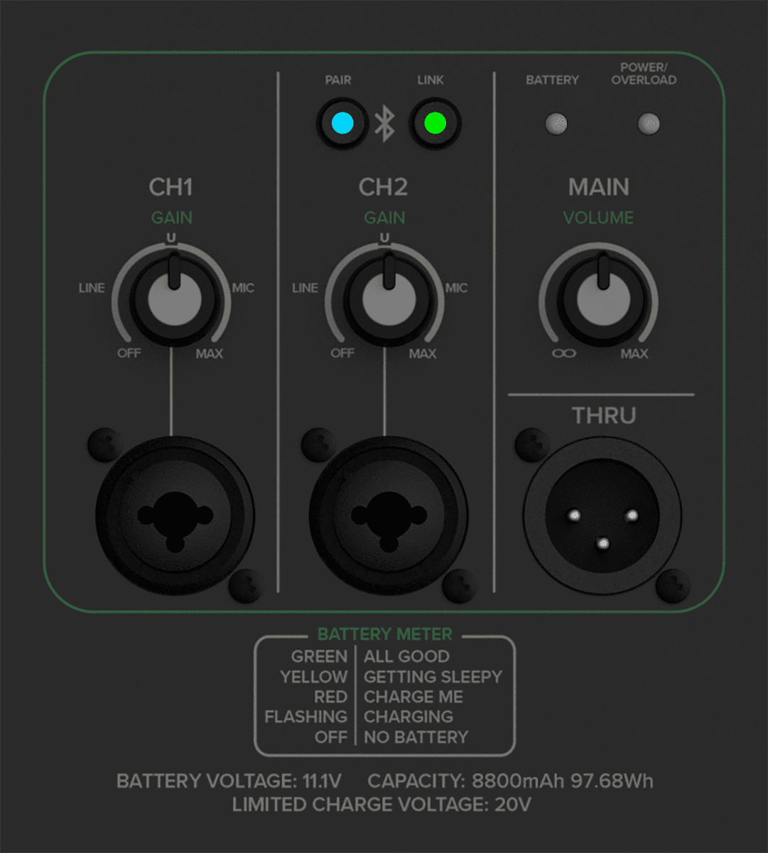 - Couplage par Bluetooth avec une seconde Thrash212 GO pour une reproduction stéréo de la musique