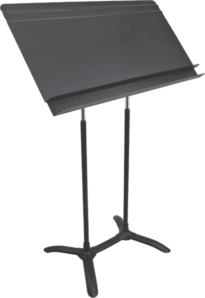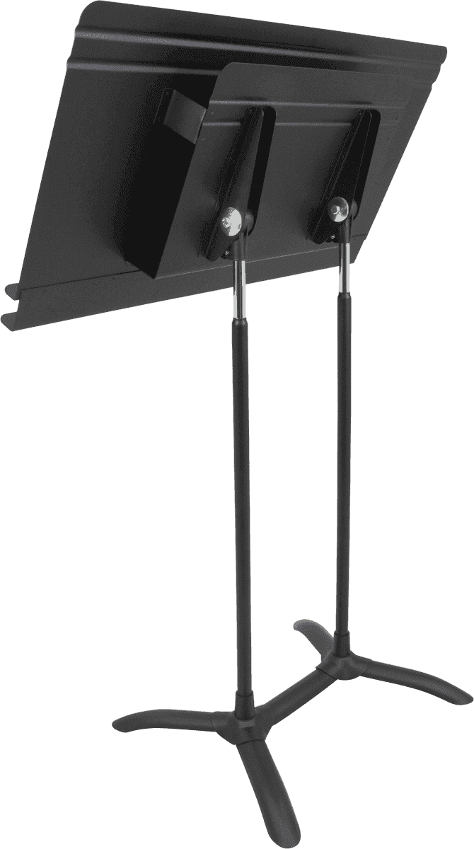 Conçu pour les besoins des chefs d'orchestre, ce pupitre à double pied est extrêmement stable. La table, plus large, accueille les partitions de grand format et le double support permet de ranger une multitude d'accessoires. De plus, une pochette de rangement supplémentaire à l'arrière du pupitre offre la possibilité d'accéder rapidement à d'autres partitions. Dimensions de la table : largeur 81 cm, hauteur 39 cm. Tige réglable de 72 cm à 128 cm (161 cm avec la table).