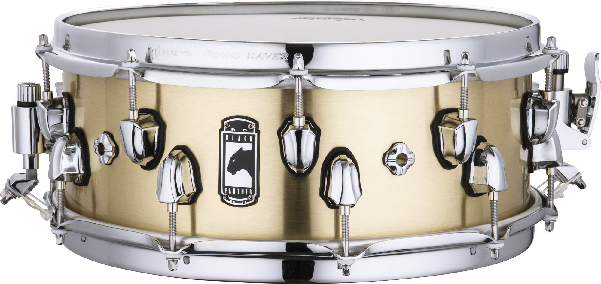 Caisse claire Mapex Black Panther 14 x 5.5""Metallion", laiton 1.2 mm, SONIClear Attenuation System, chanfreins SONIClear 45° côté frappe, cercles SONIC Saver, tirants étagés Locking B, 4 évents d'aération, déclencheur à piston cranté pour un réglage ultra-précis, accastillage chrome.