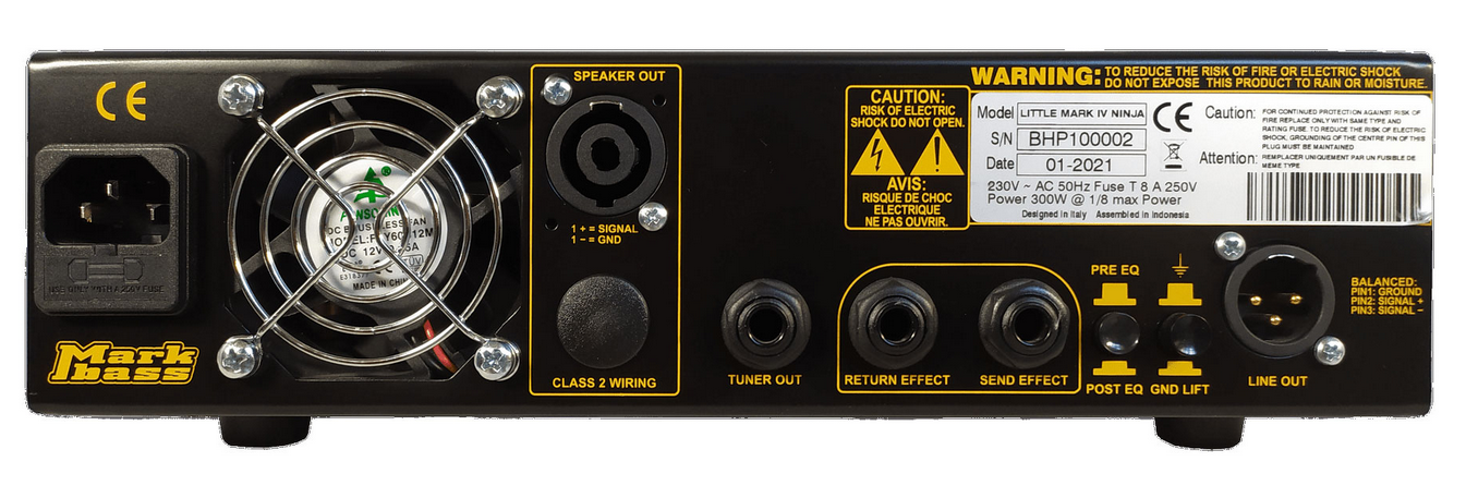 - contrôles : gain, basses, bas médiums, haut médiums, aigus et Master Volume