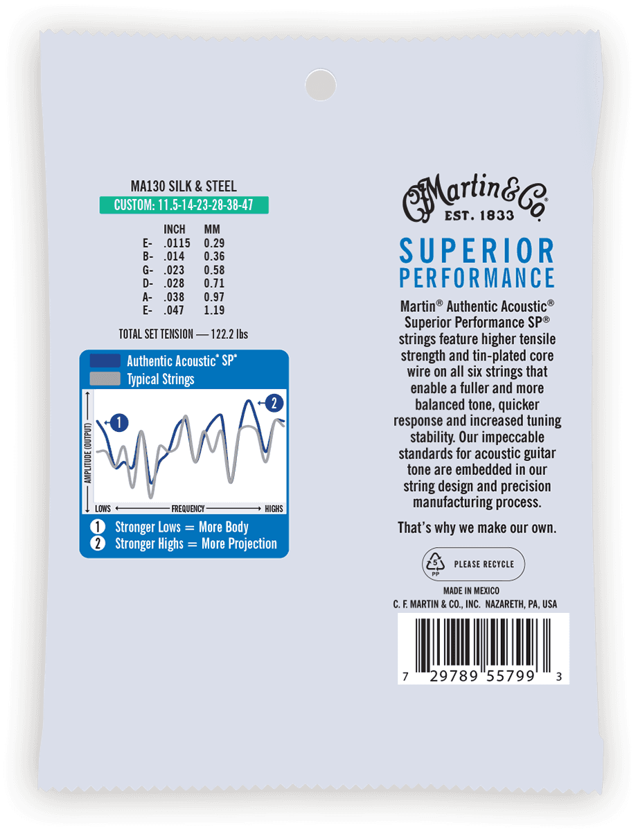 Les cordes Martin Authentic Acoustic ont été conçues pour répondre aux besoins des guitaristes. En partant d’une âme très solide, Martin a ajouté un plaquage d’étain sur les 6 cordes pour une résistance accrue à la corrosion. Elles ont ensuite été pourvues d’un filage de haute qualité qui donnera un son consistant qui durera chansons après chansons. Disponible en 80/20 Bronze et en 92/8 Phosphore Bronze.