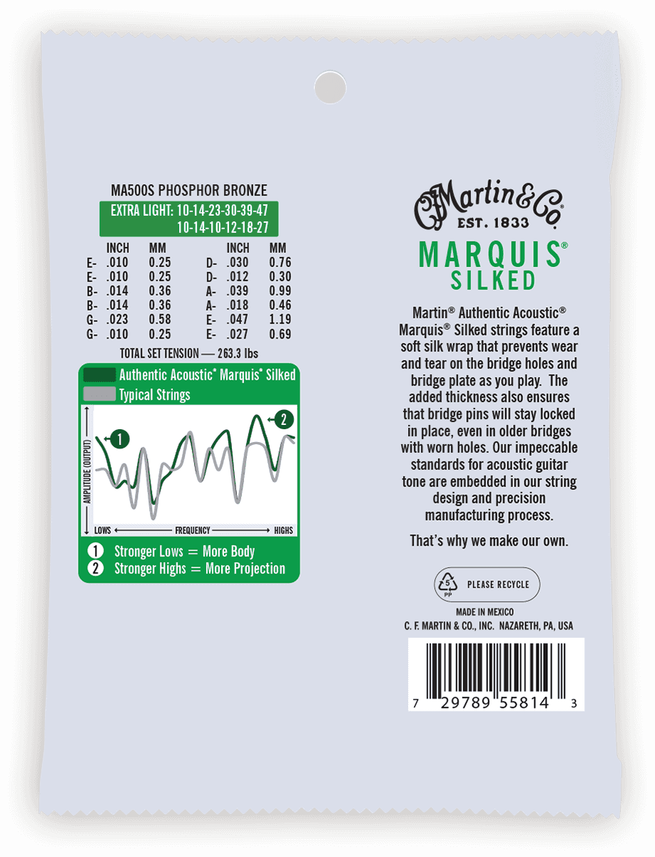 C.F MARTIN & CO - CMA MA500S 92/8 Phosphore Bronze - Authentic Silked, 12c Extra Light, 92/8 - 10-47