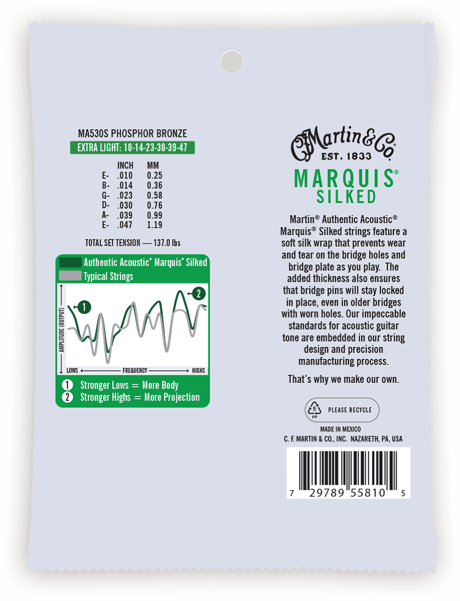 C.F MARTIN & CO - CMA MA530S 92/8 Phosphore Bronze - Authentic Silked, Extra Light, 92/8 - 10-47