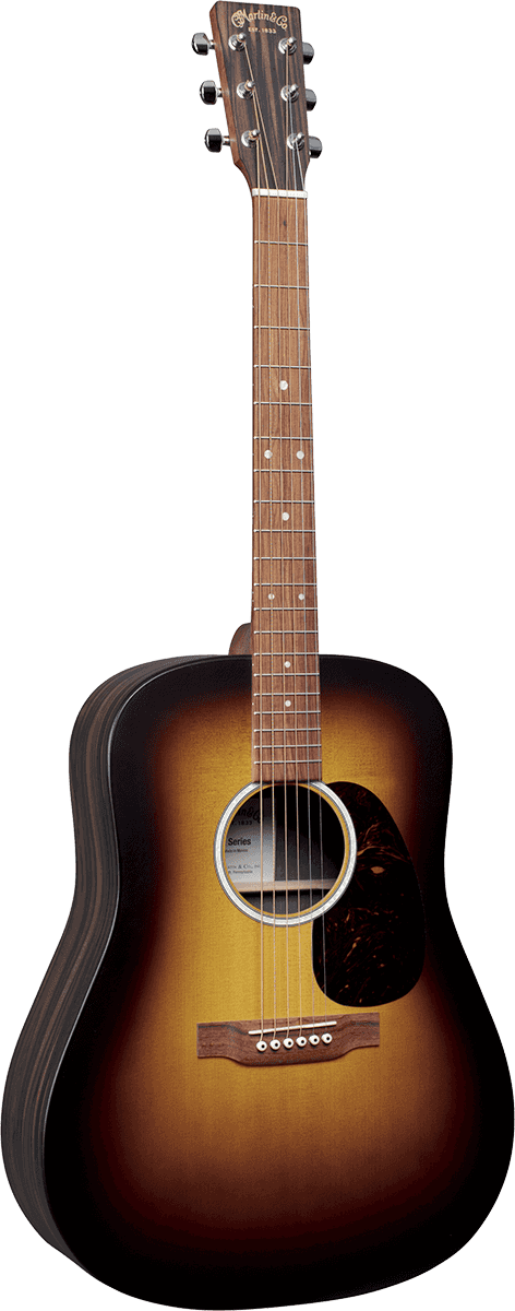 Ce modèle de format Dreadnought a une table en épicéa Sitka avec une superbe traitement Sunburst, un dos et des éclisses aux motifs de Macassar en composite (HPL). Les nouvelles incrustations de nacre sur la rosace et la touche donnent une richesse à la DX2E Burst, la rendant aussi impressionnante à regarder qu'à jouer. Avec un manche Performing Artist, une touche et un chevalet en bois massif sélectionné, le transfert sonore de ce modèle a été grandement amélioré. Elle est équipée d'une électronique Fishman® MX et montée en cordes Martin Authentic Acoustic Lifespan® 2.0. Avec une nouvelle housse souple rembourrée, dotée de protections pour la tête, le chevalet et l’attache-courroie, ainsi que d’un revêtement extérieur hydrofuge durable, ce modèle vous suivra partout.