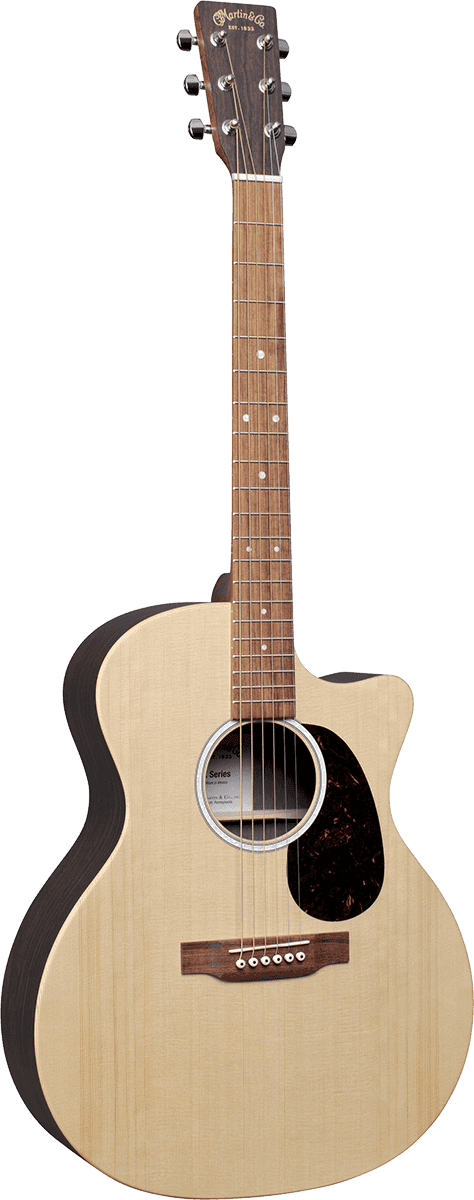 Ce modèle de format Grand Performance à pan coupé dispose d’une table en épicéa Sitka, d’un dos et d’éclisses aux motifs de Palissandre figuré en composite (HPL). Les nouvelles incrustations de nacre sur la rosace et la touche donnent une richesse à la GPCX2E Palissandre la rendant aussi impressionnante à regarder qu'à jouer. Avec un manche Performing Artist, une touche et un chevalet en bois massif sélectionné, le transfert sonore de ce modèle a été grandement amélioré. Elle est équipée d'une électronique Fishman® MX et montée en cordes Martin Authentic Acoustic Lifespan® 2.0. Avec une nouvelle housse souple rembourrée, dotée de protections pour la tête, le chevalet et l’attache-courroie, ainsi que d’un revêtement extérieur hydrofuge durable, ce modèle vous suivra partout.