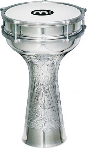 Darbouka aluminium martelé main, 18.5 x 34 cm, peau synthétique, clé d'accord