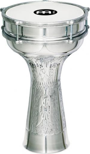 Darbuka aluminium martelé main, 20.5 x 37 cm, cymbalettes intérieures, peau synthétique, clé d'accord