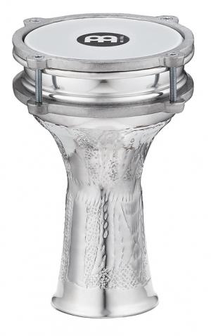 Darbouka aluminium martelé main, 13.5 x 23.5 cm, peau synthétique, clé d'accord