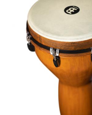 La peau 100% synthétique ne se désaccorde pas avec les changements de température ou d'humidité et se combinent pour produire des slaps nets et ciblés et des basses robustes. Sa construction légère fait de ce djembé un compagnon de voyage idéal.