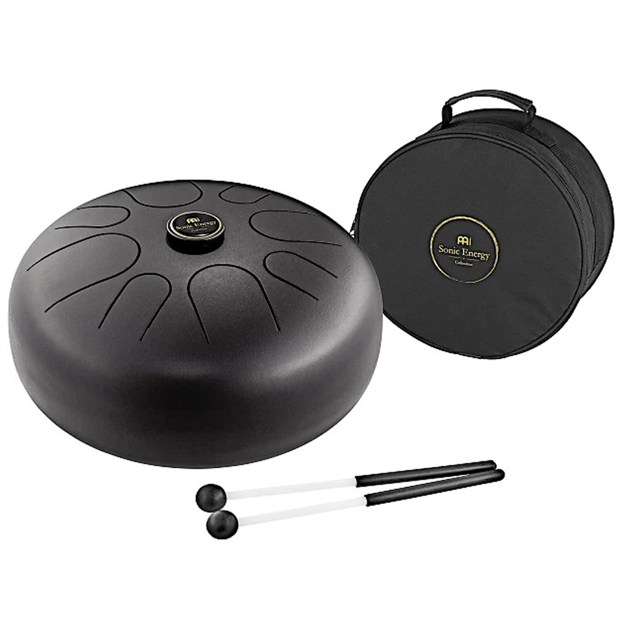 Tongue Sonic energy LA AKEBONO, noir A3,C4,E4,G4,F4,A4,B4,C5 Ø 30 cm, hauteur : 16.50 cm, acier poudré, paire de mailloches en caoutchouc et housse incluse