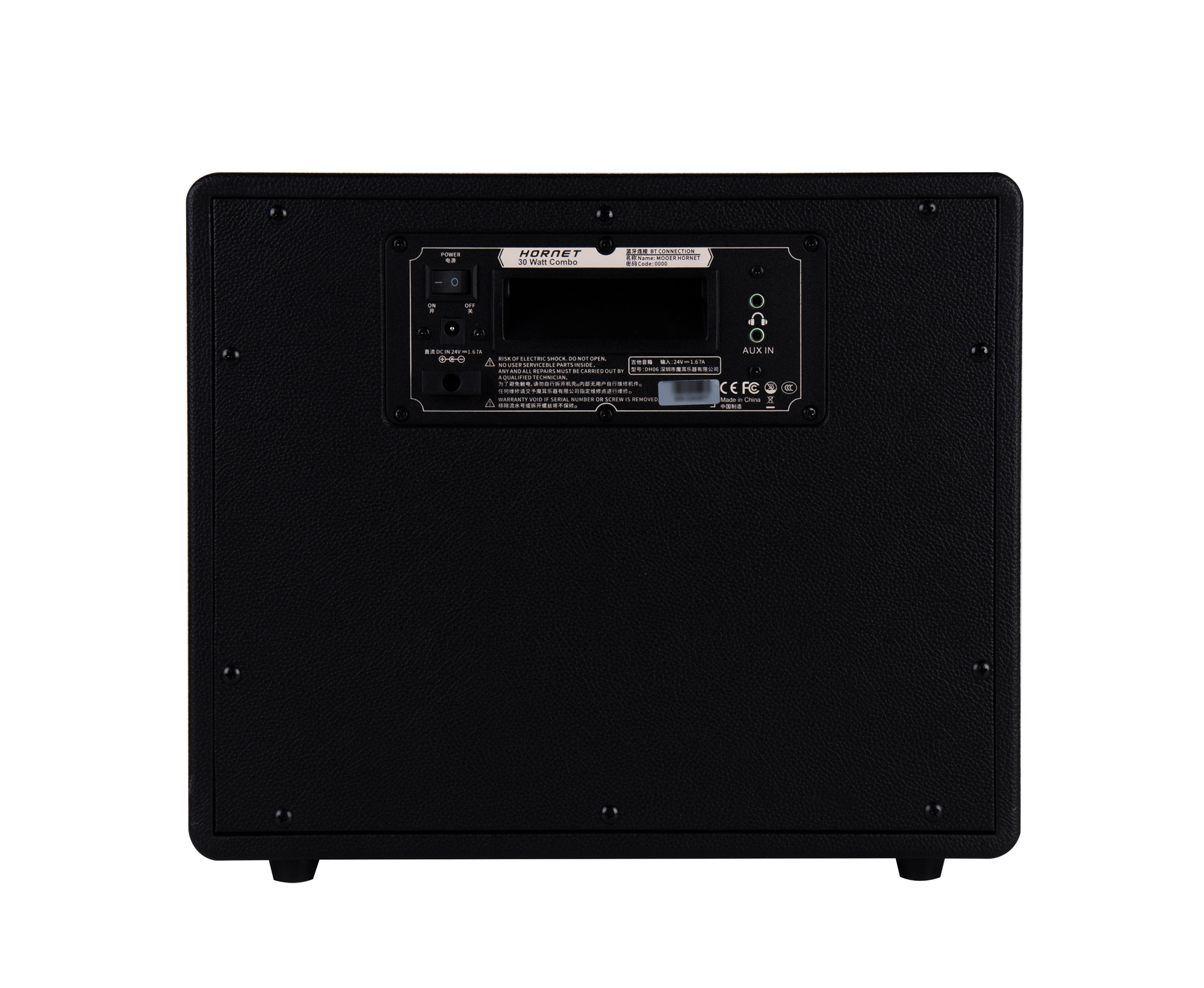 Ampli HORNET 30 BLACK, 30W, HP 8" 9 modélisations d'amplis haute-qualité - Effets Modulation/Délai/Réverb, fonction Tap Tempo 9 presets utilisateur 2 modes (Live/Preset) Connectivité Bluetooth Entrée auxiliaire Sortie casque Alimentation par adaptateur 24V fourni Dimensions: 34 x 28 x 18.8 cm Poids: 4 kg.