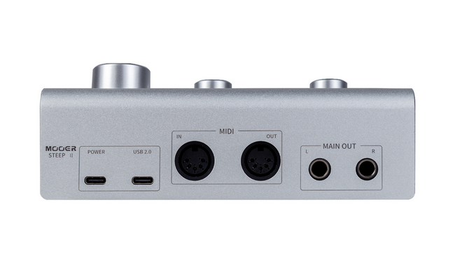 Interface audio STEEP II, 2 canaux, deux entrées combo XLR/Jack, alimentation fantôme, USB type C 2.0, MIDI In/Out, argent