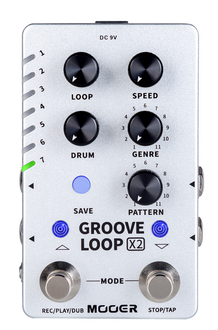 Pédale GROOVE LOOP X2, boite à rythmes et looper stéréo, 14 presets, boîtier métal, true bypass, gris