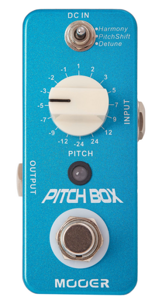Pédale PITCH BOX, harmonisation 3 modes (Harmony, Pitch Shift, Detune) Polyphonique Boîtier métal True bypass Alimentation par adaptateur 9V (non fourni) Consommation: 128mA Dimensions: 93.5 x 52 x 42mm Poids: 170g