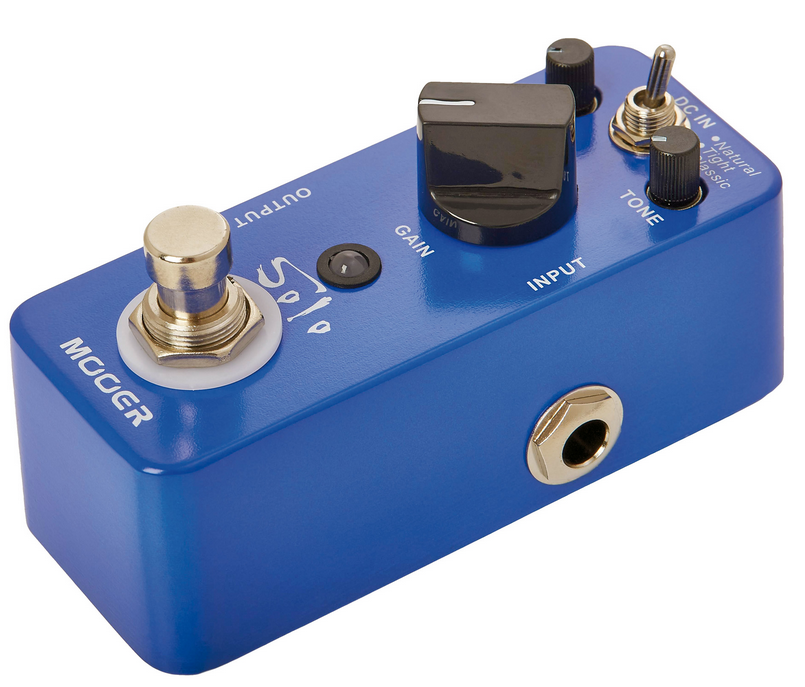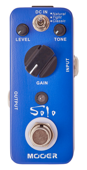 Pédale SOLO, distorsion hi-gain spécial solos à 3 modes (Natural/Tight/Classic), boîtier métal, true bypass, bleu