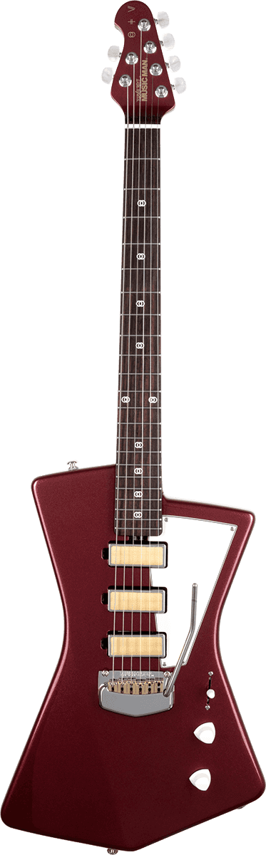 - Corps : okoume - Manche : vissé en érable torréfié - Diapason : 25.5″ - Largeur au sillet : 41,30 mm - Touche : palissandre - Radius : 10″ - Frettes : 22, acier inoxydable - Chevalet : Music Man St. Vincent Modern tremolo avec pontets laiton - Micros : 3 x Music Man custom mini-humbuckers - Sélecteur : 5 positions
