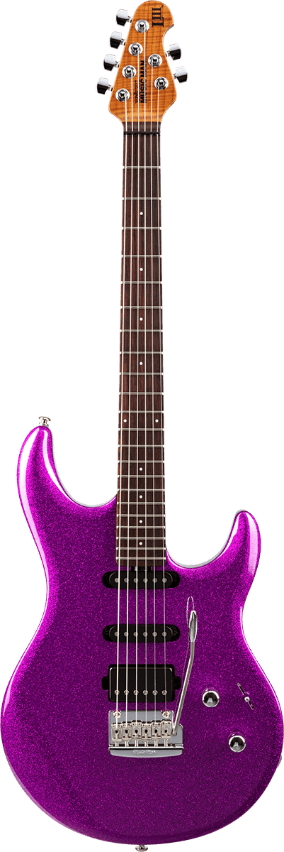 Corps : aulne Table : érable Manche : érable torréfié et figuré Diapason : 25.5″ Largeur au sillet : 41,3 mm - Touche : palissandre - Radius : 12″ - Frettes : 22 - Chevalet : vibrato vintage flottant Music Man - Micro chevalet : Music Man custom wound humbucking - Micro central : Music Man custom wound single coil - Micro manche : Music Man custom wound single coil - Contrôles : push/push volume, tone - Sélecteur : 5 positions