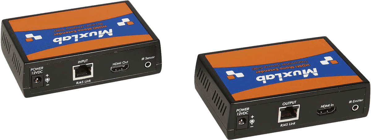 Le kit est fourni avec un émetteur et récepteur HDMI, deux boitiers d'alimentation, complété par un émetteur et un récepteur IR pour le contrôle.