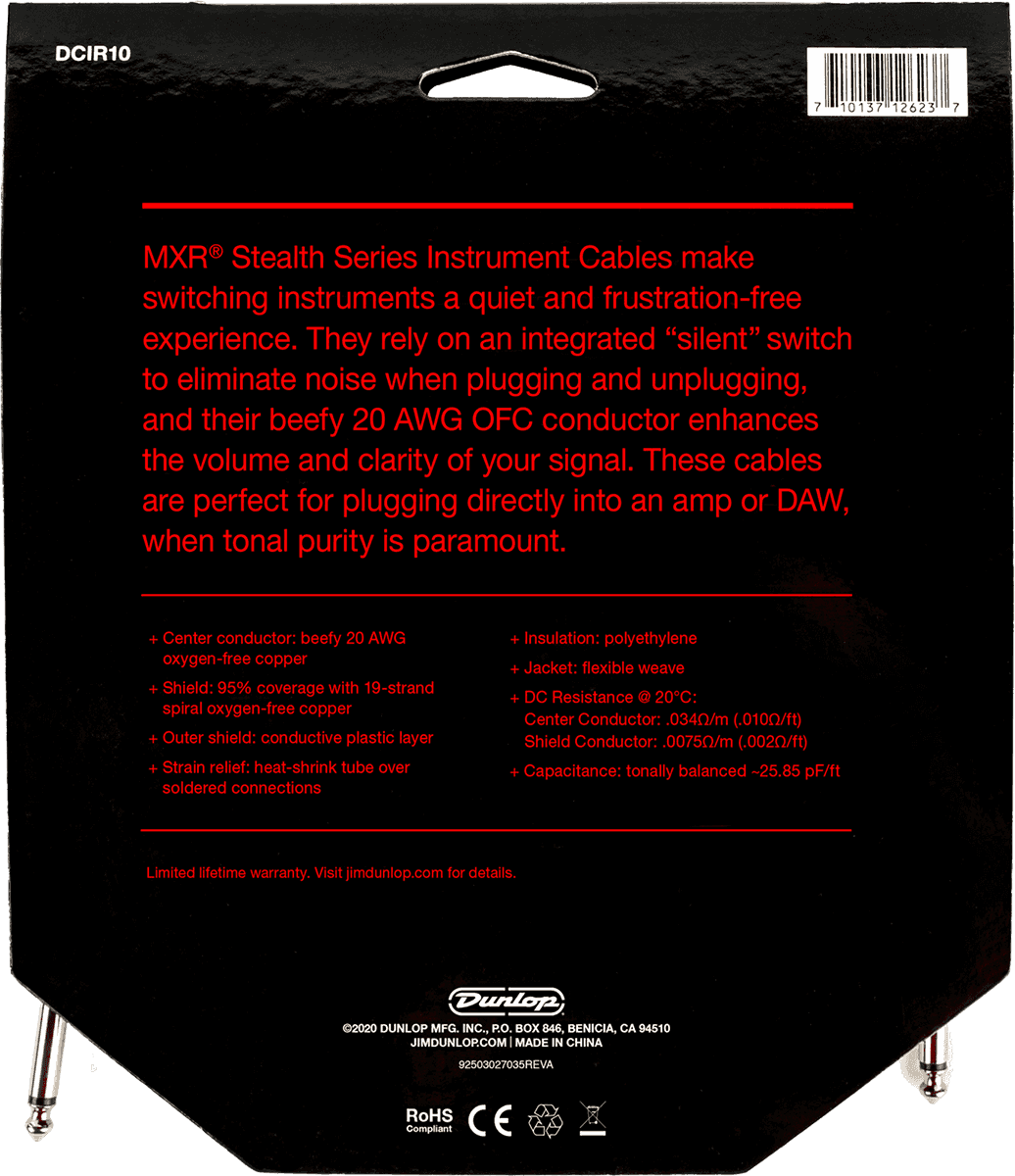 MXR DCIR10 Câble Jack Jack Silent 3m