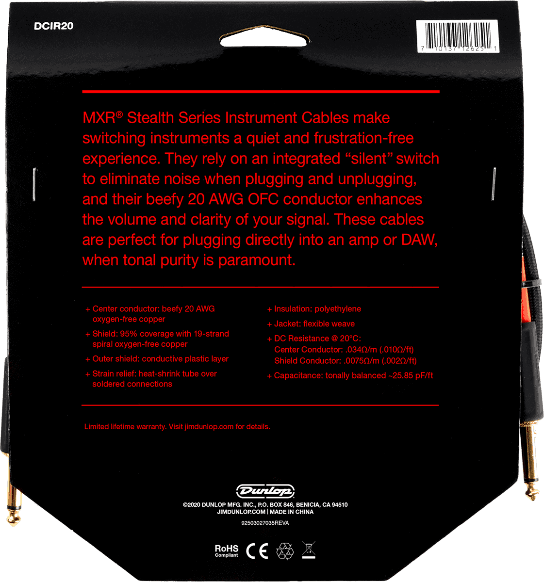 MXR DCIR20 Câble Jack Jack Silent 6m