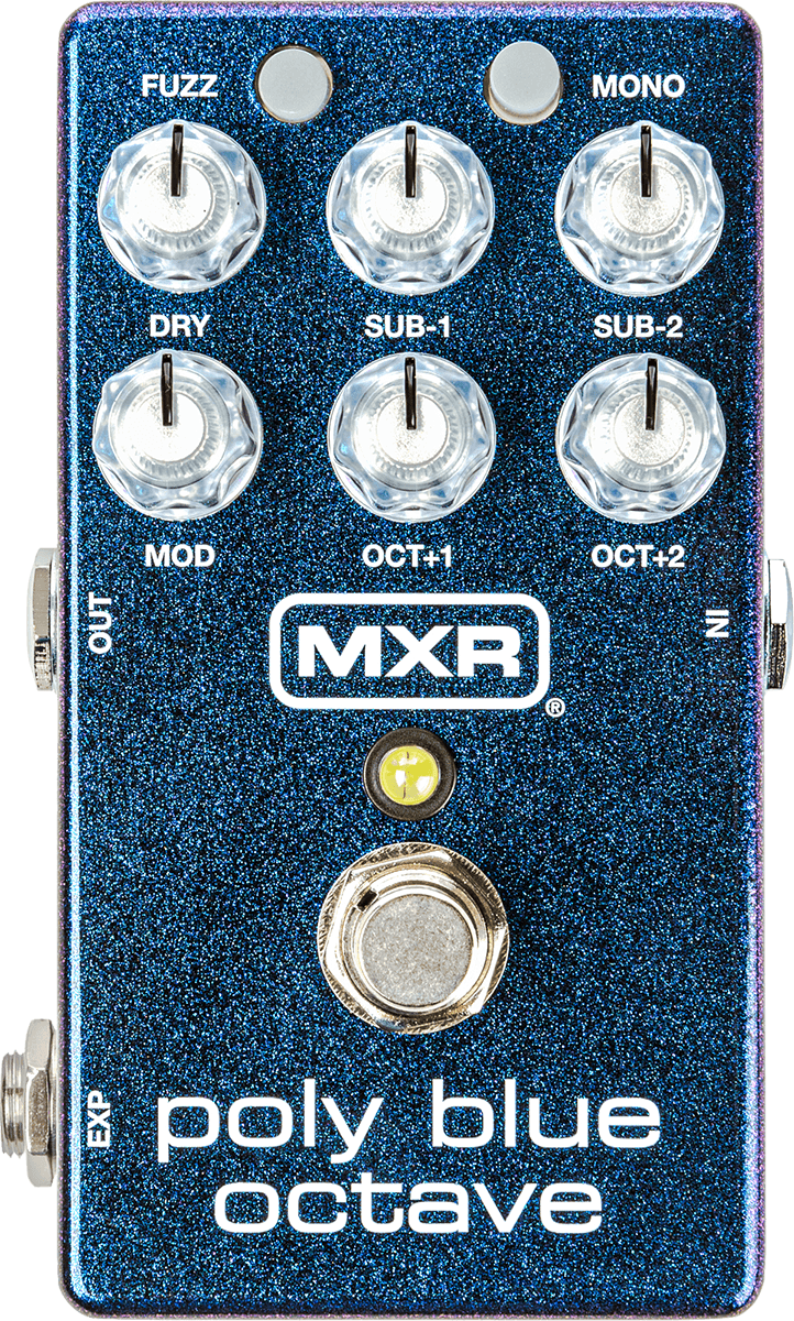 Bien plus qu’un simple octaver, la Poly Blue dispose de 4 octaves séparées et réglables : -1, -2, +1, +2. Polyphoniques par défaut, ces octaves sonnent aussi bien en single notes qu’en accords. Mais si vous cherchez un son vintage brut, le mode monophonique donne aux octaves inférieures le son analogique et chaleureux du classique MXR Vintage Bass Octave. Les octaves supérieures quant à elles ont le caractère vintage et incisif de l’Octavio Fuzz.