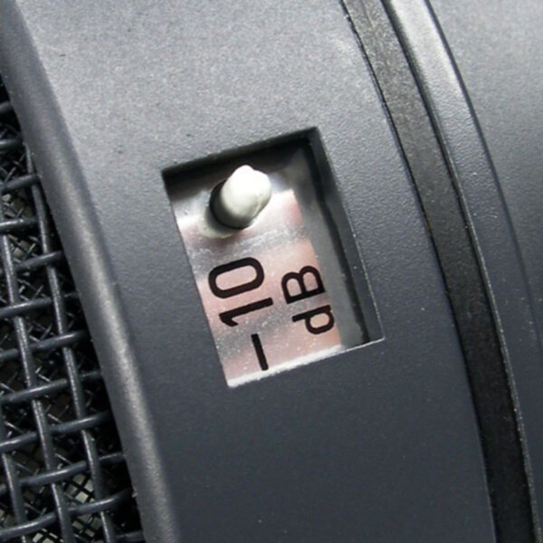 Un sélecteur implanté à l'arrière du microphone réduit la sensibilité de 10 dB. Lorsqu'il est activé, le microphone accepte des niveaux de pression sonore allant jusqu'à 127 dB SPL (chiffre équivalent à une pression sonore de 45 Pa) sans distorsion.