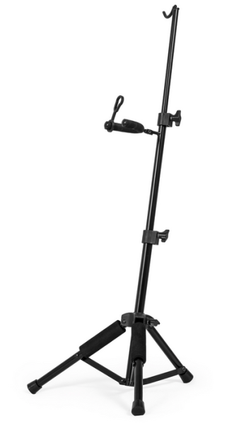 Support violon 3 parties, pliable, cordon de sureté, points d'appui avec revêtement protecteur, crochet pour archet, noir