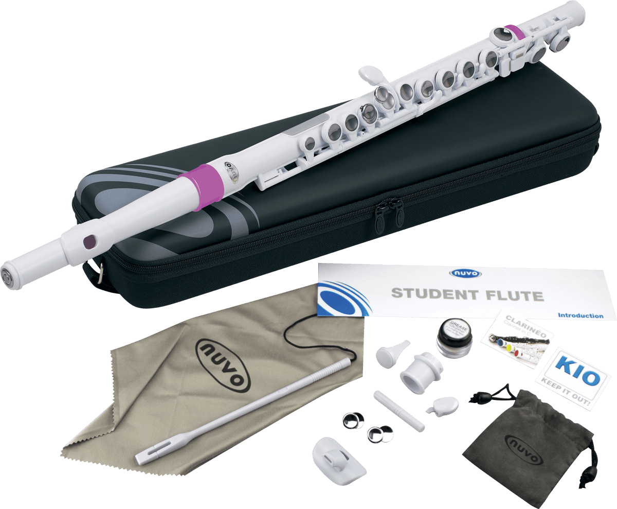 La Student Flute Nuvo est un instrument dédié aux débutants. Très bonne alternative avec son poids inférieur de moitié à une flûte traditionnelle, elle offre une sonorité riche dans tous les registres. Elle inclut une 2ème embouchure, identique à celle d'une flûte à bec, permettant de souffler plus facilement. Elle est livrée dans son étui thermoformé avec un tube de graisse, un écouvillon, quelques pièces de rechange ainsi qu'un fascicule en français reprenant le doigté de l'instrument.