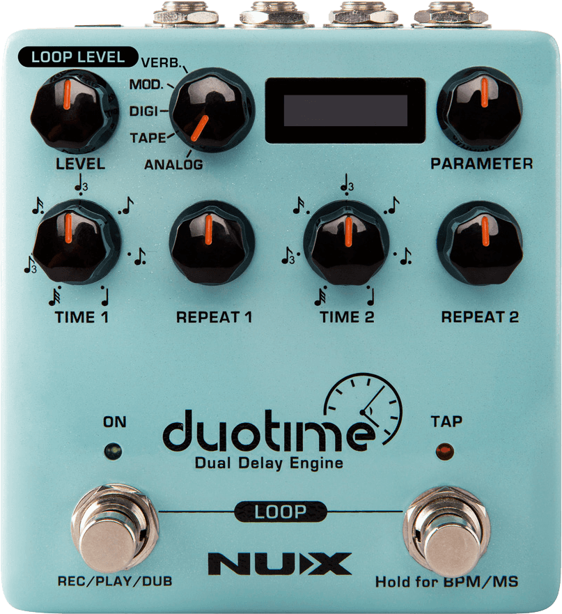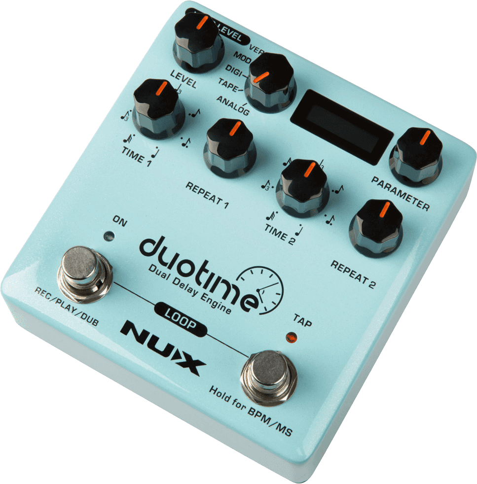 Avec le Duotime, l'objectif fondamental de Nux est de proposer aux musiciens une pédale de délai stéréo très complète, tout en gardant la simplicité inhérente à ce format.