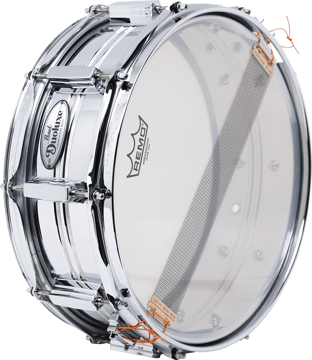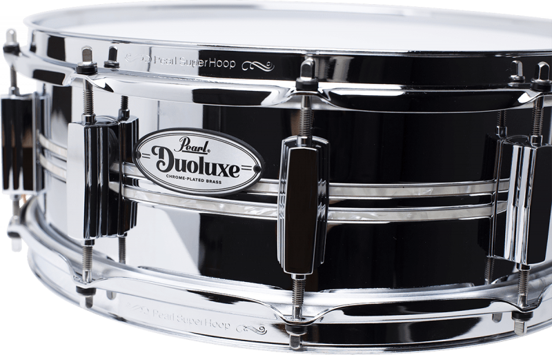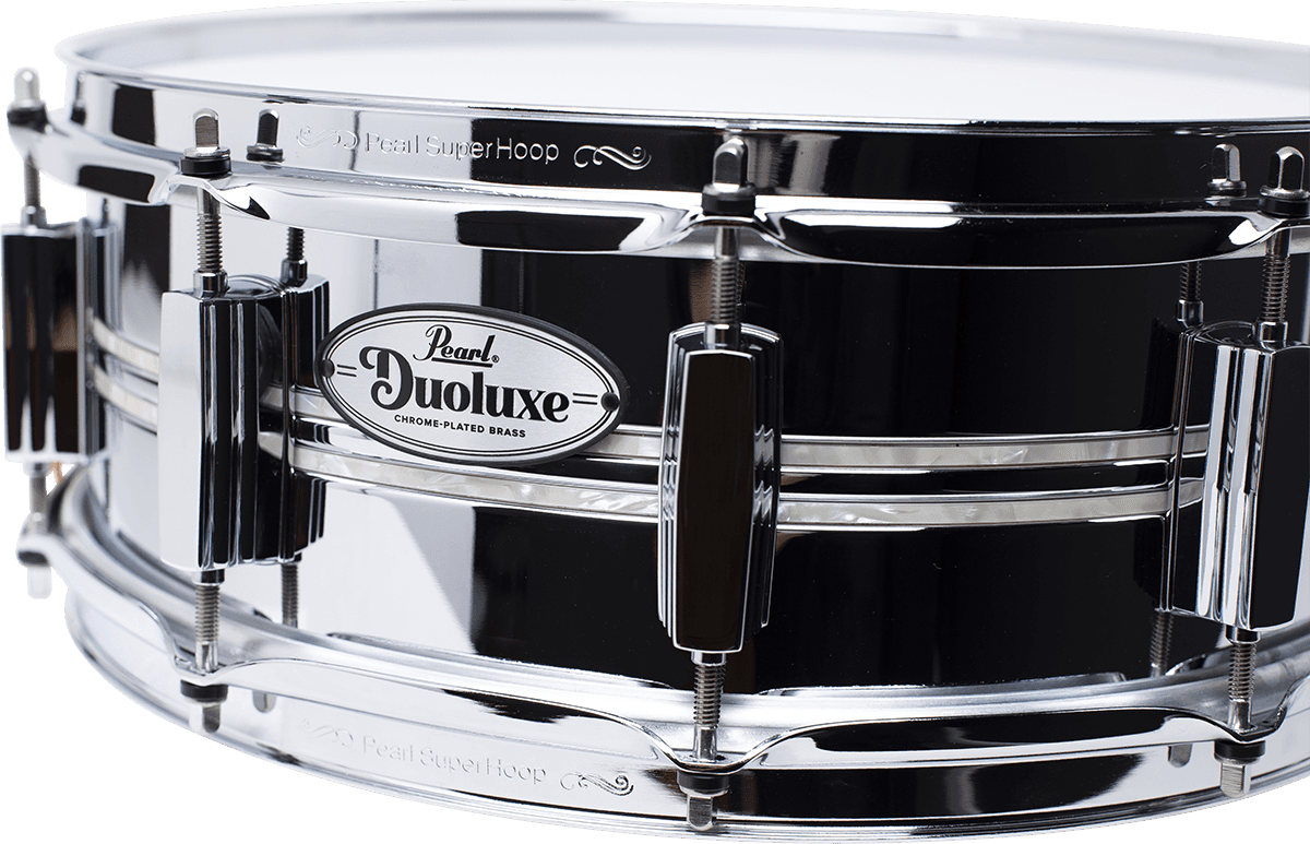 Autre première pour Pearl, la Duoluxe est dotée de la seule coque métallique incrustée dans le monde des caisses claires. Cette conception rendue célèbre sur les modèles vintage Jupiter, est minutieusement remplie de bandes de Nicotine White Marine Pearl (#405) découpées à la main. Cela permet non seulement d'obtenir un son de caisse légèrement tempéré, mais aussi d'obtenir un look unique et immédiatement perceptible.