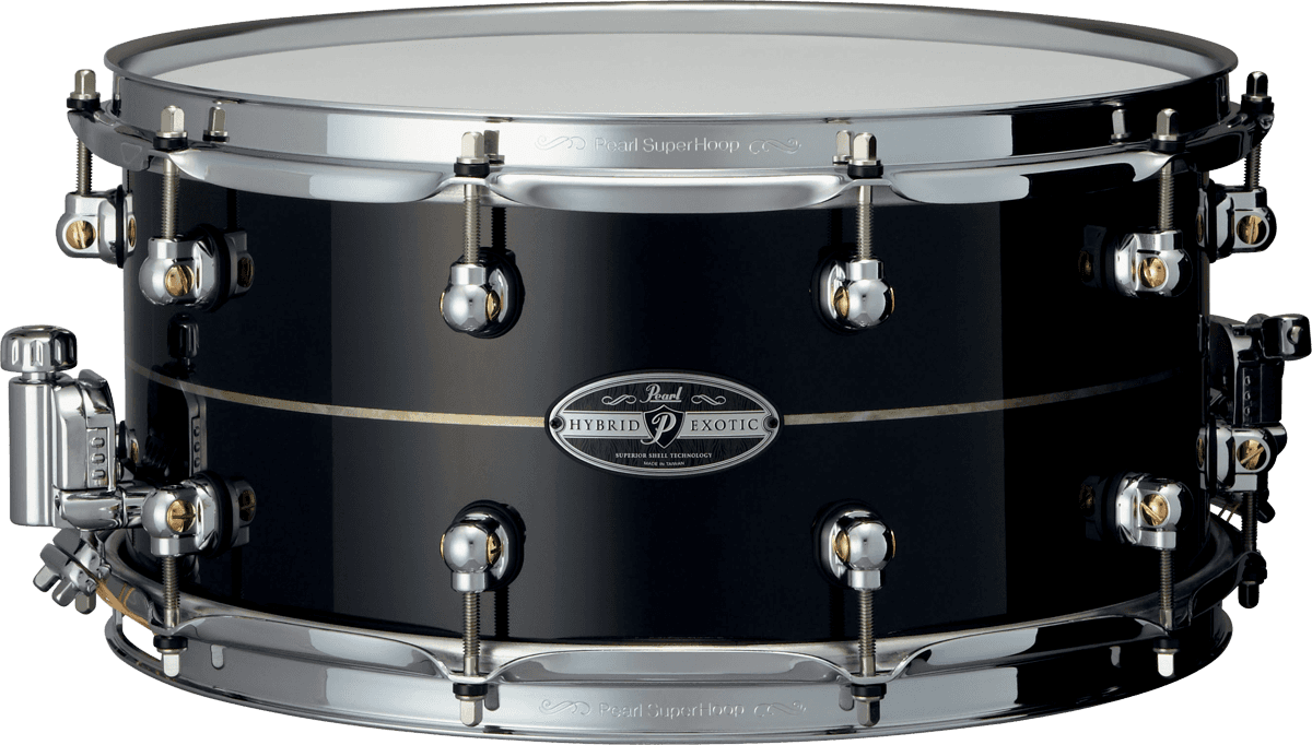Dans les années 1970, Pearl a été le premier à développer des caisses claires hybrides en bois et fibre de verre. 40 ans plus tard, la marque japonaise réintroduit cette gamme de caisses claires atypique. En mélangeant le kapur, bois utilisé pour la richesse de ses basses fréquences, avec une épaisseur intérieure en fibre de verre, Pearl a créé une caisse claire puissante aux sonorités chaudes et graves et aux aigus tranchants. Ces petites merveilles sont dotées d'une superbe finition laquée noire avec incrustation pearloïd.