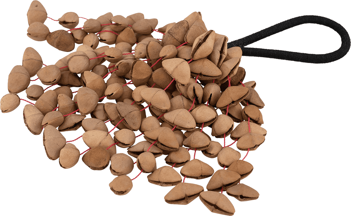 Le shaker Kenari Nut de Pearl crée un son boisé robuste qui ajoutera de la texture à de nombreux styles musicaux. Le shaker comporte une poignée en boucle de 5" reliée à 22 brins de noix Kenari. Chaque brin contient 6 noix attachées à la main sur un cordon de nylon. L'extérieur dur et les coquilles triangulaires et creuses de la noix Kenari deviennent des chambres sonores miniatures lorsqu'on en joue.