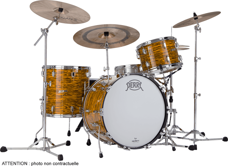 Véritable témoignage de l'odyssée des 75 ans de Pearl en matière de qualité et de progrès des batteries, les fûts Pearl President Deluxe sont une version moderne d'un modèle bien connu. Puisant dans les origines mêmes de l'une des plus grandes sociétés de batteries du monde, la série President Deluxe fait revivre la saveur unique et sombre des fûts en lauan (acajou plus léger) pour une expérience de jeu traditionnellement pleine et contrôlée. Présentant un style vintage de premier ordre sans les défauts des anciens accessoires, la série President Deluxe présente une réédition de la coquille classique "Battleship" et des amortisseurs de sons réglables sur chaque fût. L'identité élégante de l'écusson original Pearl et le logo classique de la grosse caisse s'ajoutent à l'éclat tourbillonnant d'un choix des nouvelles finitions couvertes Ripple. Chaque batterie President Series Deluxe est équipée en série de peaux Remo CS "Black Dot" UK, d'une bande d'amortissement de la grosse caisse en feutre classique, d'un porte-cymbales monté sur le fût de la grosse caisse et de pics de grosse caisse réglables de style "Gullwing".