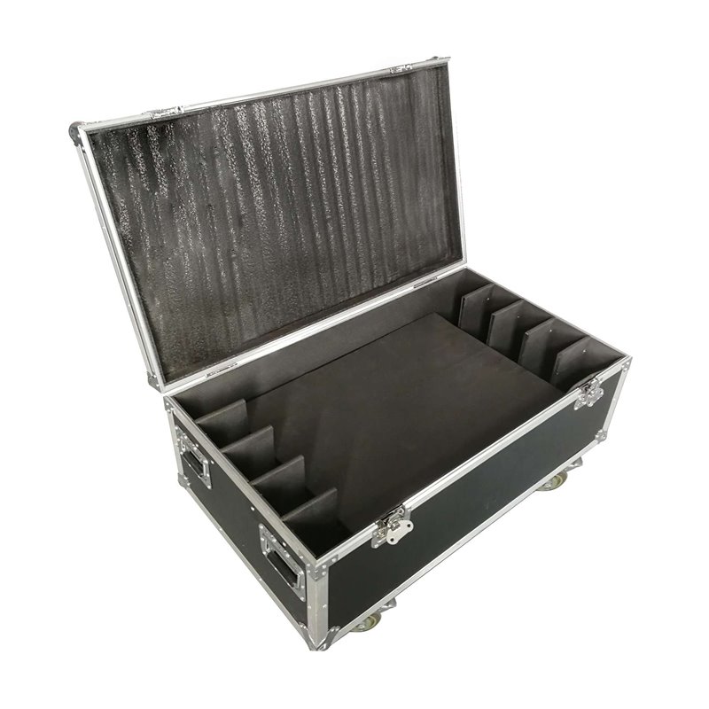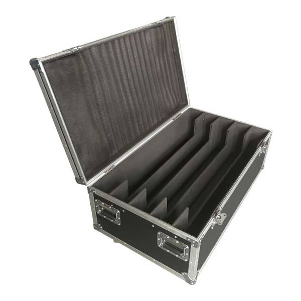 Flight-case multi plis spécialement conçu pour le transport de 10 barres d’éclairage d’un mètre.