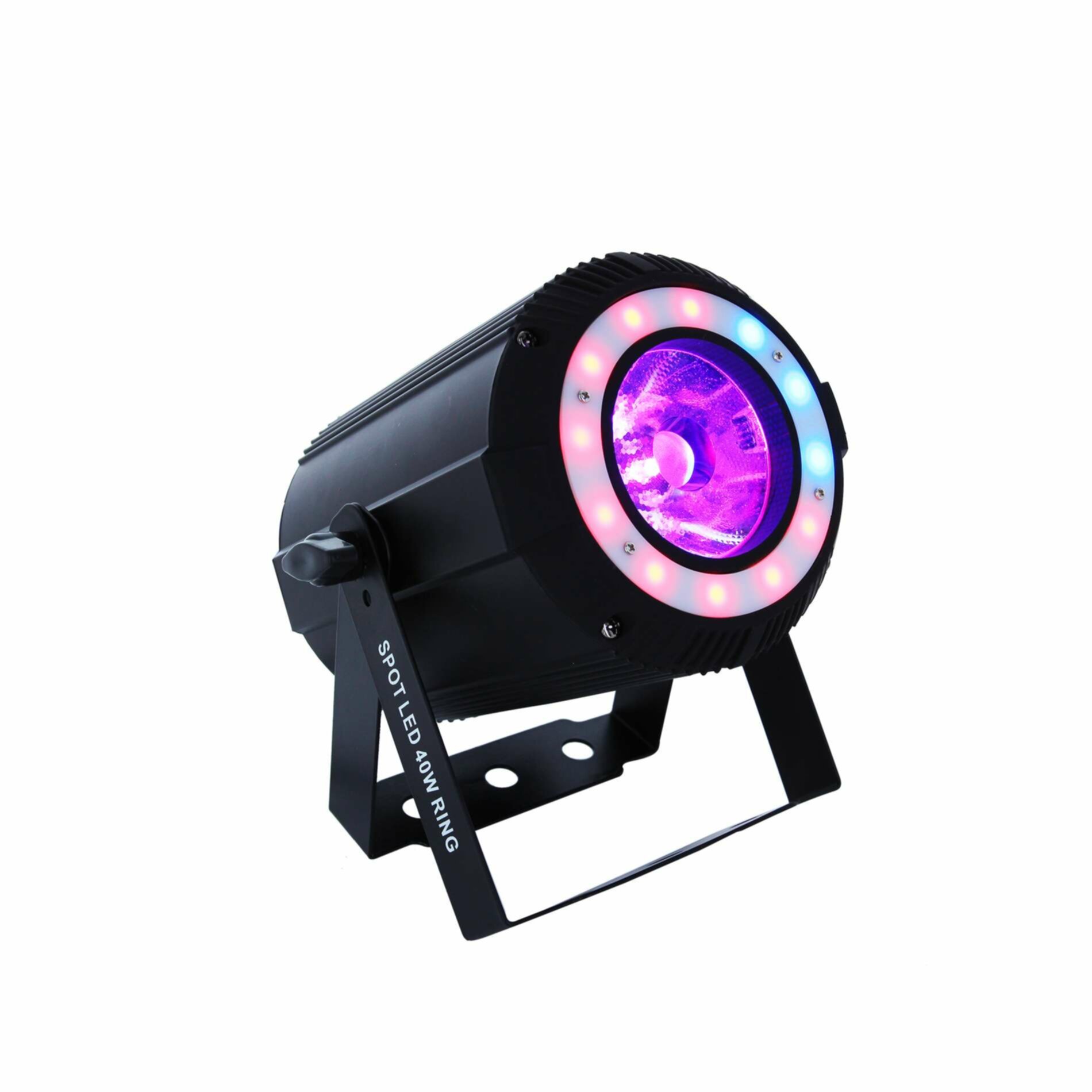 Le Spot Led 40W RING est un projecteur doté d’une LED de 40W Quad produisant un faisceau très fin hyper pratique pour éclairer une boule à facette, une piste de danse ou des tables de discothèque.