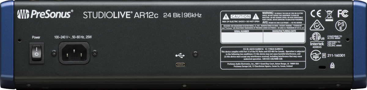 L'interface audio intégrée à la StudioLive AR12c vous permet d'enregistrer les 12 entrées, plus le mixage principal, ainsi que deux flux de lecture stéréo pour mixer des pistes précédemment enregistrées, des effets sonores, un renvoi audio et bien plus encore. Les célèbres préamplis micro XMAX de PreSonus fournissent tout le gain nécessaire pour capturer les détails les plus subtils. La connectique analogique de la console de mixage rend le branchement de vos équipements très intuitif. Grâce à sa connexion compatible USB-C, votre StudioLive AR12c est prête à être utilisée avec quasiment tout ordinateur.