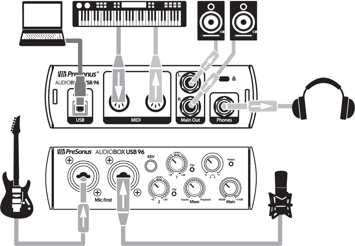 Le meilleur choix pour les musiciens mobiles et les podcasters, l’interface audio AudioBox USB 96, 2 canaux, est compacte, robuste et compatible avec n’importe quel logiciel d’enregistrement PC & Mac. Pourvue de deux pré-amplis Class A de qualité professionnelle, d’une fréquence d’échantillonnage pouvant aller jusqu’à 96 kHz / 24 bit et du puissant logiciel Studio One Artist 3 pour Mac et PC, la nouvelle AudioBox USB 96 comblera toutes vos attentes !