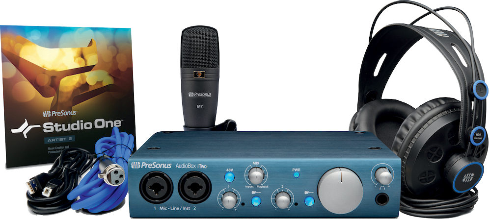 Les packs AudioBox regroupent tout ce dont vous avez besoin pour créer de la musique, des podcasts, des illustrations sonores et les diffuser sur le Web. Enregistrez à l'aide de l'interface audio et du micro fourni, éditez, arrangez, mixez et masterisez sur le logiciel Studio One Artist V4 disposant de pistes audio illimitées et diffusez à votre réseau grâce à la plateforme Nimbit. - Interface AudioBox iTwo 2 entrées mic/line compatible iPad - Micro à condensateur large capsule M7 - Casque de monitoring dynamique stéréo semi-ouvert HD7 - Câbles iPad et micro fournis - Logiciel Studio One Artist avec pistes audio illimitées - Logiciel Capture Duo pour iPad en téléchargement gratuit