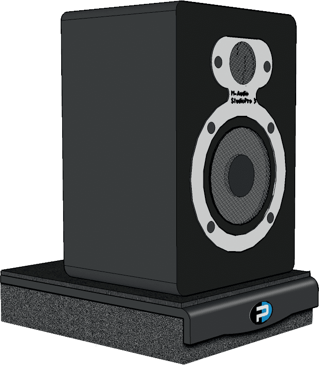 Cette plateforme pour haut-parleur est composée de 3 éléments :une embase en mousse uréthane de haute densité qui isole le moniteur de la tablette, une épaisse plaque d'acier de 6mm découpée au laser et une mince surface de mousse néoprène.