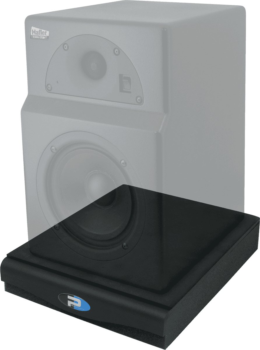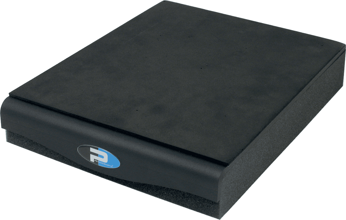 Trois éléments de base composent ce support : une embase en mousse uréthane de haute densité qui isole le moniteur de la plate-forme, une épaisse plaque d'acier de 6mm découpée au laser et une mince surface de mousse néoprène. La mousse haute densité isole efficacement le haut-parleur en éliminant les vibrations et les résonances qui induisent toujours des anomalies de phase, tandis que la plaque d'acier, qui représente une masse importante de la structure, assure la stabilisation du haut-parleur. Le revêtement néoprène du dessus évite tout glissement pour que le moniteur reste fermement en place.