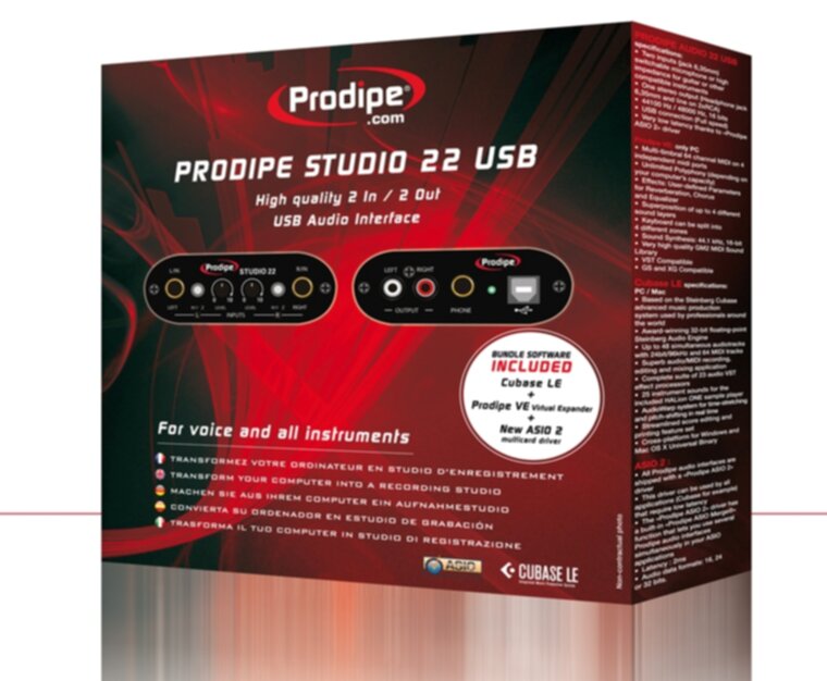 Carte audio PRODIPE STUDIO 22, et son Bundle CUBASE LE + PRODIPE VE + nouveau Driver ASIO 2