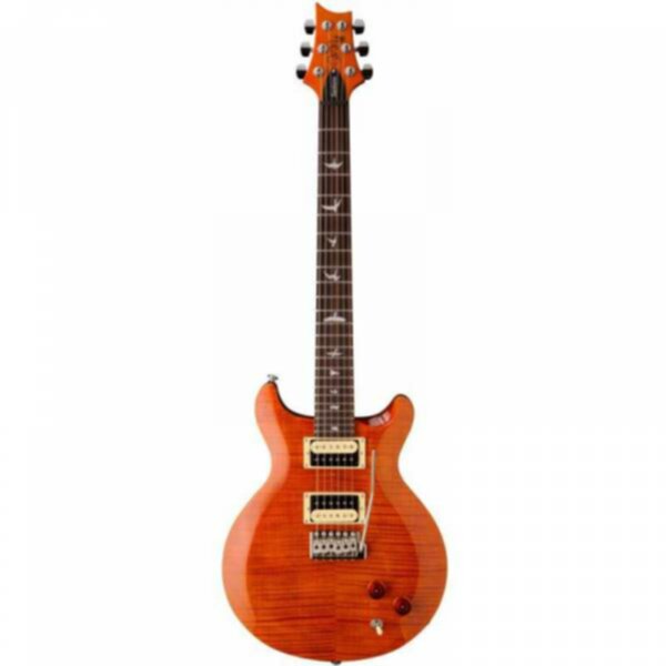 Guitare électrique. Corps Acajou avec table Erable flammé 24 frettes. Manche en érable. Touche en palissandre de 24,5". Repères incrustations "oiseaux" . Profil manche large / épais. Chevalet: Trémolo PRS-Designed. Mécaniques: PRS Designed Tuners. Micros: PRS SE Santana. Réglages de Volume et tonalité. Selecteur micros 3 positions. Gigbag SE fourni.