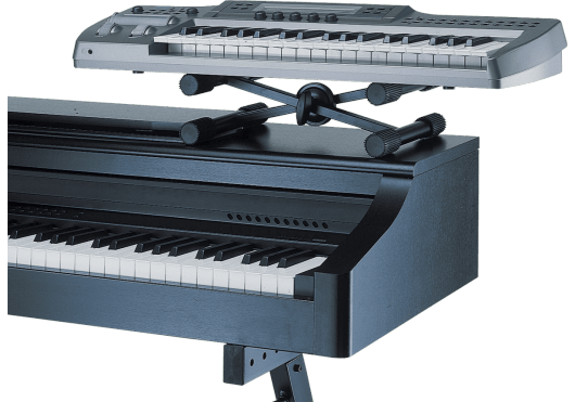 Les stands clavier "T-Rex" offrent aux claviéristes plus d'avantages que toutes autres gammes de stand "X" ! Au centre de chaque support en "T" se trouve le disque de verrouillage "DENTÉ". Ajustez facilement la hauteur de ce stand en desserrant le bouton central et en le déplaçant sur l'un des neuf niveaux de hauteur. Pour bloquer la hauteur c’est extrêmement simple, il faut simplement revisser le bouton central.