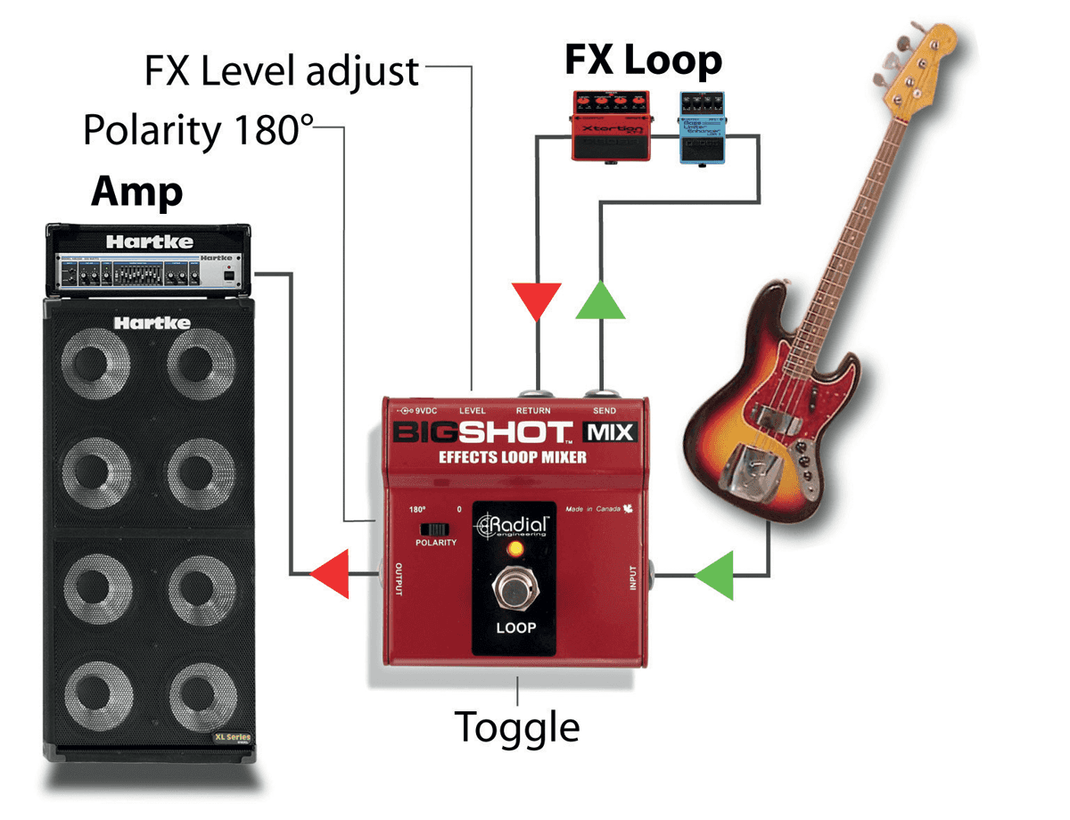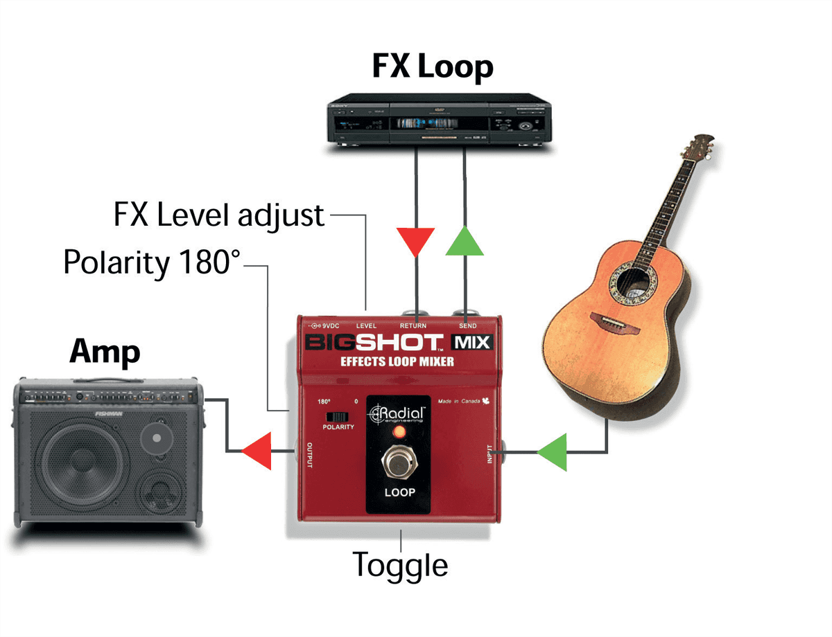 La Radial BigShot MIX est une pédale de mixage pour effets qui vous permet de combiner le son direct de votre guitare ou de votre basse avec par exemple une pédale de saturation ou flanger de la même façon qu'une table de mixage professionnelle permet de mélanger des effets dans le signal.