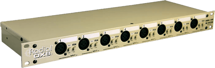 Le Radial ox est un octuple splitter de signal micro au format rack 1U. Chaque canal est équipé d'un transformateur Jensen pour un transfert de signal optimal ainsi que d'un switch de pad - 20dB pour les applications de niveau ligne.