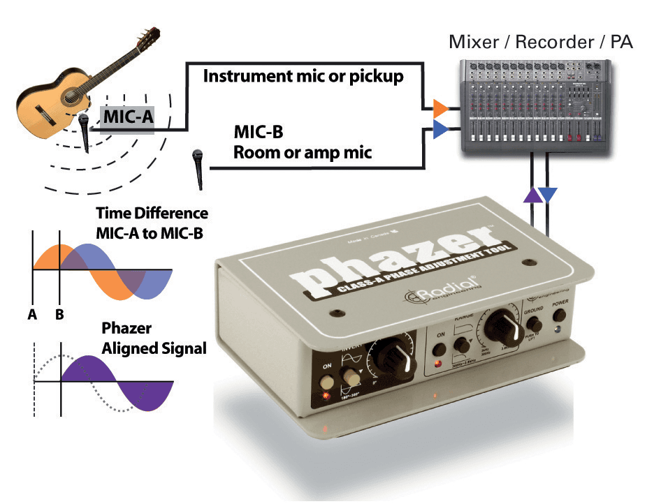 Que vous travailliez en studio ou en live, sonoriser un instrument avec 2 micros peut engendrer des problèmes si les 2 micros ne sont pas alignés en phase.